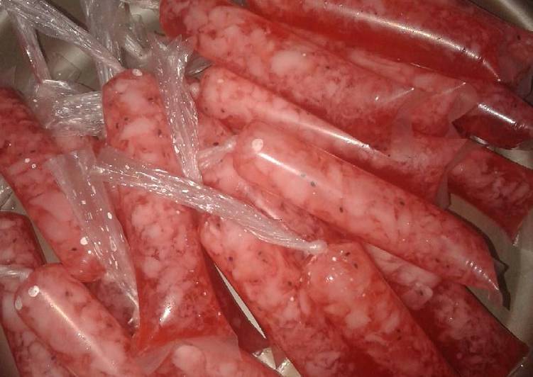 Dicampur dengan sirup dan bahan pemanis lainnya. 2 bongkah es batu. Siapkan es batu besar diwadah tuang adonan sesendok demi sesendok ke atas es batu lakukan hingga adonan habis.